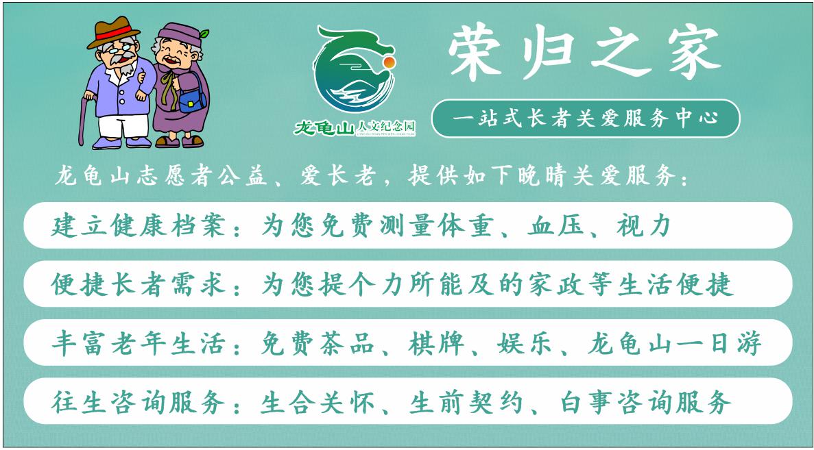 為更好的服務(wù)老人,關(guān)愛長者,龍龜山人文紀(jì)念精心打造“榮歸之家”服務(wù)中心,為各位老年朋友營造一個寬松、舒適、休閑的好處去。