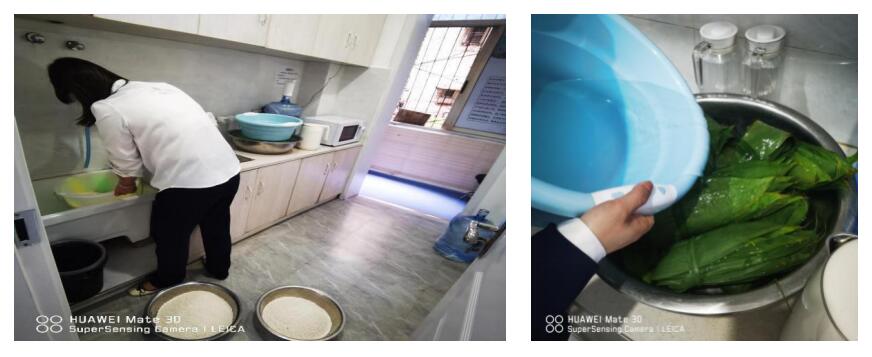 為了活動的順利開展,主辦方提前泡發糯米、綠豆,以及粽葉的準備