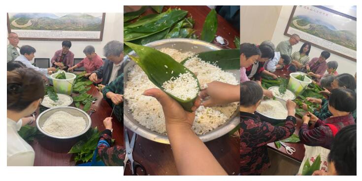 開心包粽子比賽活動分為10人一組,每人包10個,先完成5人有獎品。比賽進入白熱化階段,阿姨手藝精湛!粽子包得又大又圓,味道又香又甜,大家能包多少,就帶回家多少!!!