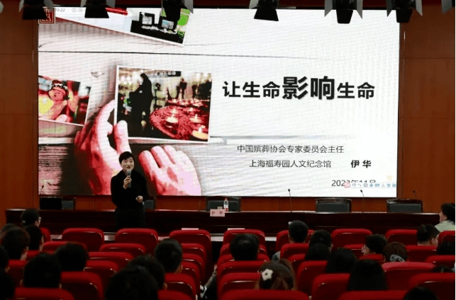 從事殯葬行業(yè)26年,伊華以讓“告別變美麗”、“公墓變公園”、“傳統(tǒng)祭祀變現(xiàn)代紀念”為理念,不斷為黑白繪上斑斕色彩,不斷為生命拓展深度。宣講中,伊華結(jié)合自身從業(yè)經(jīng)歷,與高校學(xué)子們深度分享“生命”話題,為大家?guī)硇撵`啟迪?!懊恳淮胃鎰e,不僅是逝者生命的回顧,也讓更多生者從中感悟生命的真諦,修正未來的人生方向和生命軌跡。而這種體悟更可以從‘小家’到‘大家’,促進社會正能量的傳播,真正做到‘讓生命影響生命’!”伊華動容地表示。